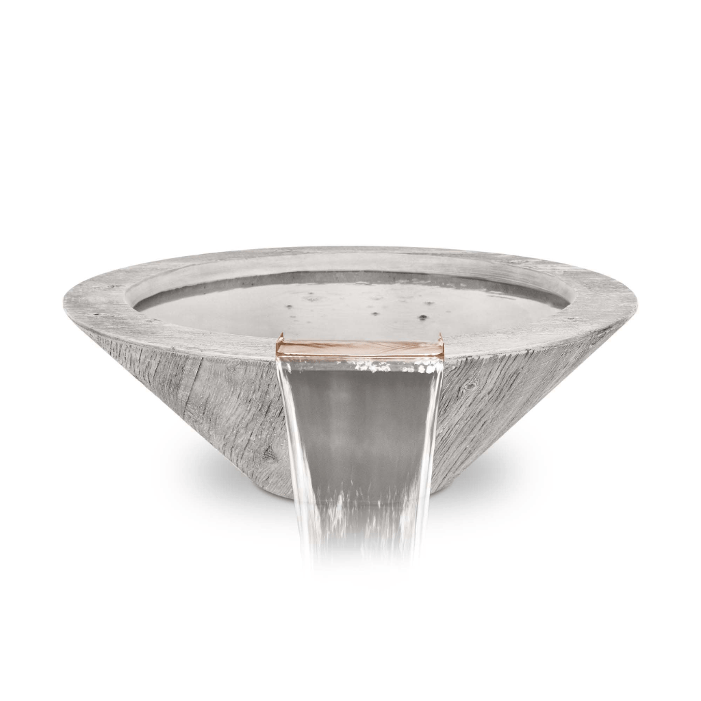 The Cazo GFRC Wood Grain Concrete Round Water Bowl, by the Outdoor plus, is the latest extension to their series. It's the complete aesthetic that adds a contemporary touch to your patio or outdoor place. Its unique color finish is what makes it outstanding amongst all the products. Along with the modern stylish look, it's highly durable and provides years of functionality. Designed to create a waterfall into your pool or water feature, it will add a touch of movement and sound to your outdoor living area. It has a gorgeous curved structure that is sure to provide visual pleasure to you and your guests.