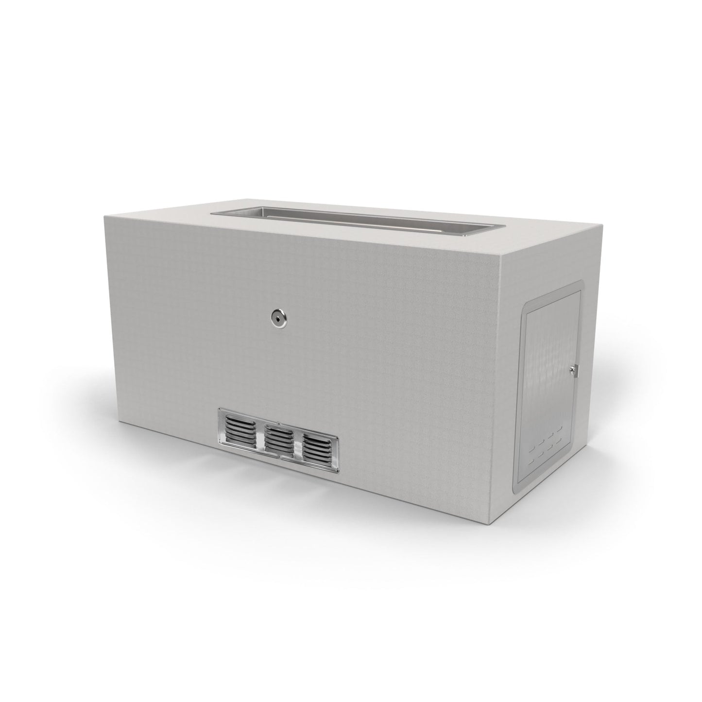 The 108-inch Rectangular Ready to Finish Fire Pit with Door is the complete addition to finalize your outdoor design with. The Outdoor Plus's products are produced in the USA to bring you the fastest lead moments in the industry. This 24" Tall unit includes a stainless steel door for propane tank storage