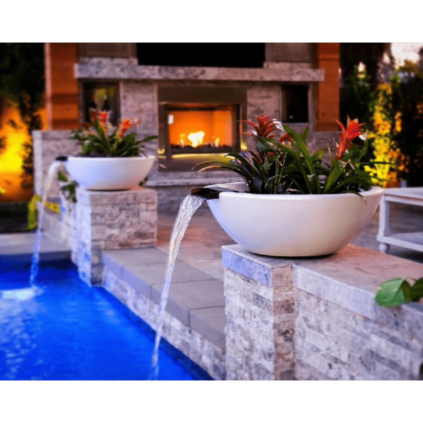 The Sedona GFRC Planter & Water Bowl is an attractive round piece that combines vegetation with a stunning waterfall and looks great in any patio, pond, or pool area, giving it a very welcoming touch of color and life. Its traditional look impresses your guests and makes your outdoor space even more beautiful. The inside of the bowls has been redesigned with a smooth finish for ease of water flow. It comes with an easy-flow water fitting that accommodates a 1 ½" water line.
