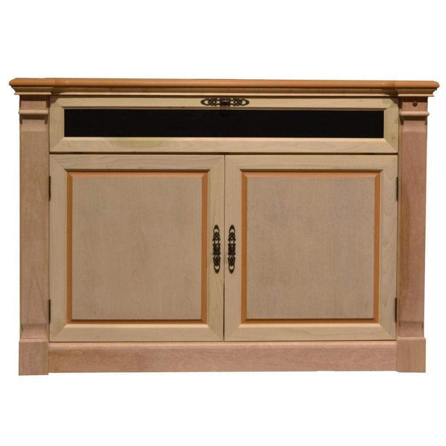 The Adonzo, one of our most popular TV lift cabinets, is now available in this unfinished model. Paint or stain it yourself to match your existing decor, or select a finish from the Sherwin Williams color palette and have Touchstone complete your custom, starting at $500.00 for the color of your choosing. The unfinished Adonzo features attractive, traditional styling and a front facing drop-down media shelf designed to hold your center channel speaker, sound bars, or other compact media components, all in perfect alignment with your flat screen TV.