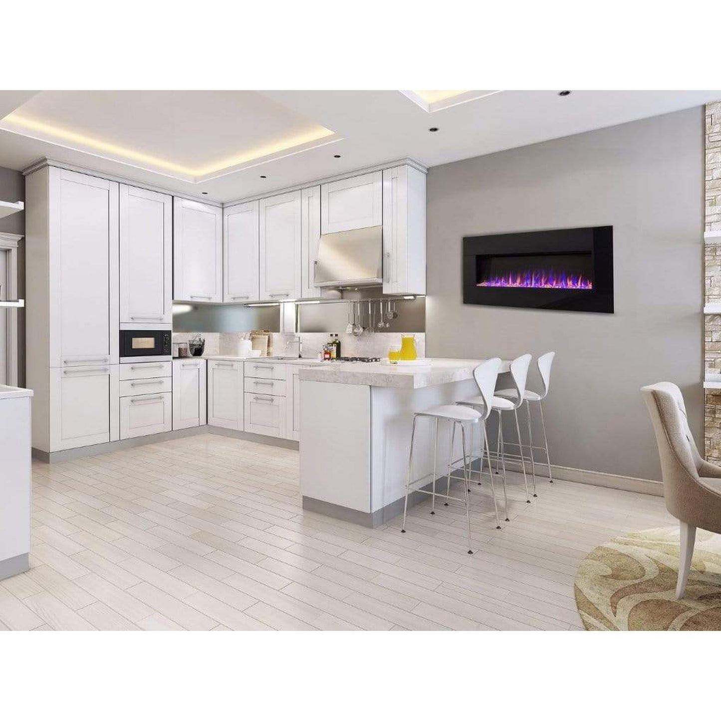 The black glass face of The AudioFlare™ is modern and adaptive to any existing home decor. The display makes this fireplace a great fit for a kitchen, bedroom, lounge or more contemporary designed room, and it is a perfect accent to the blue flame setting. The fireplace itself can also be customized to use faux logs, or crystals that allows you to change the atmosphere of the room. The surface is easy to clean and maintain, and comes off the fireplace easily to assist with installation.
