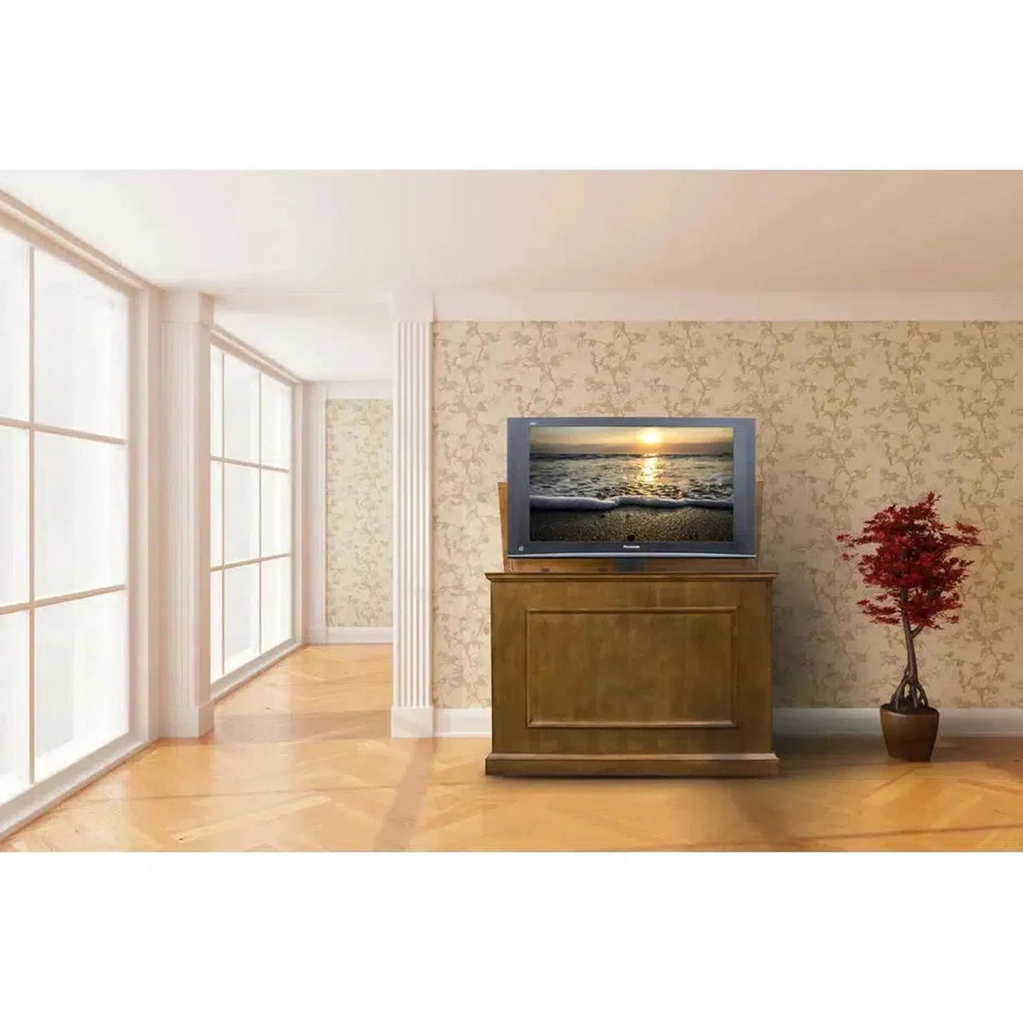 The Elevate® TV Lift Cabinet in Honey Oak finish is the small TV Lift Cabinet you have been looking for to accommodate your flat screen TV's up to 45 inches wide left to right. Thanks to this Elevates beautiful honey oak finish, you won't have to decide between style and functionality when furnishing your home; The Elevate® Honey Oak offers both.