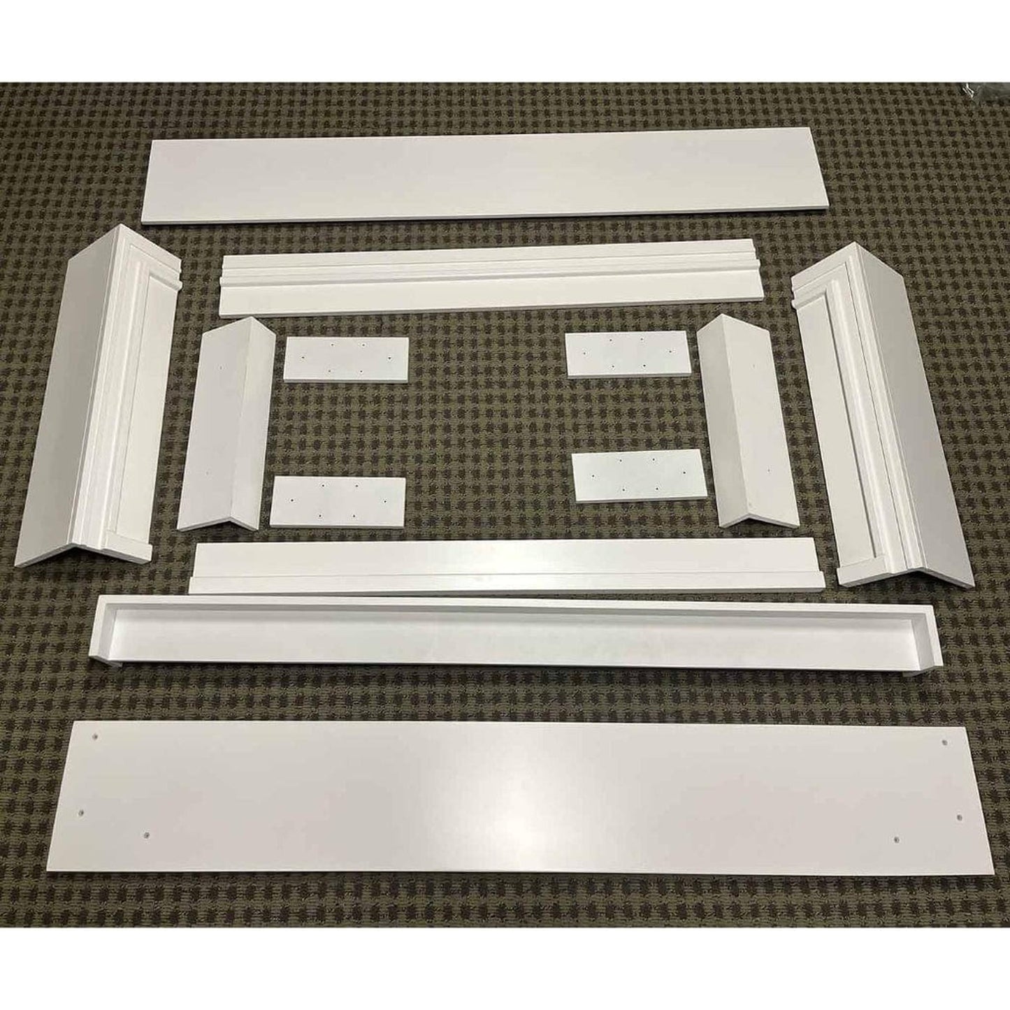 The elegant white freestanding mantel features classic moulding and blends with any home style from modern farmhouse to coastal cottage.