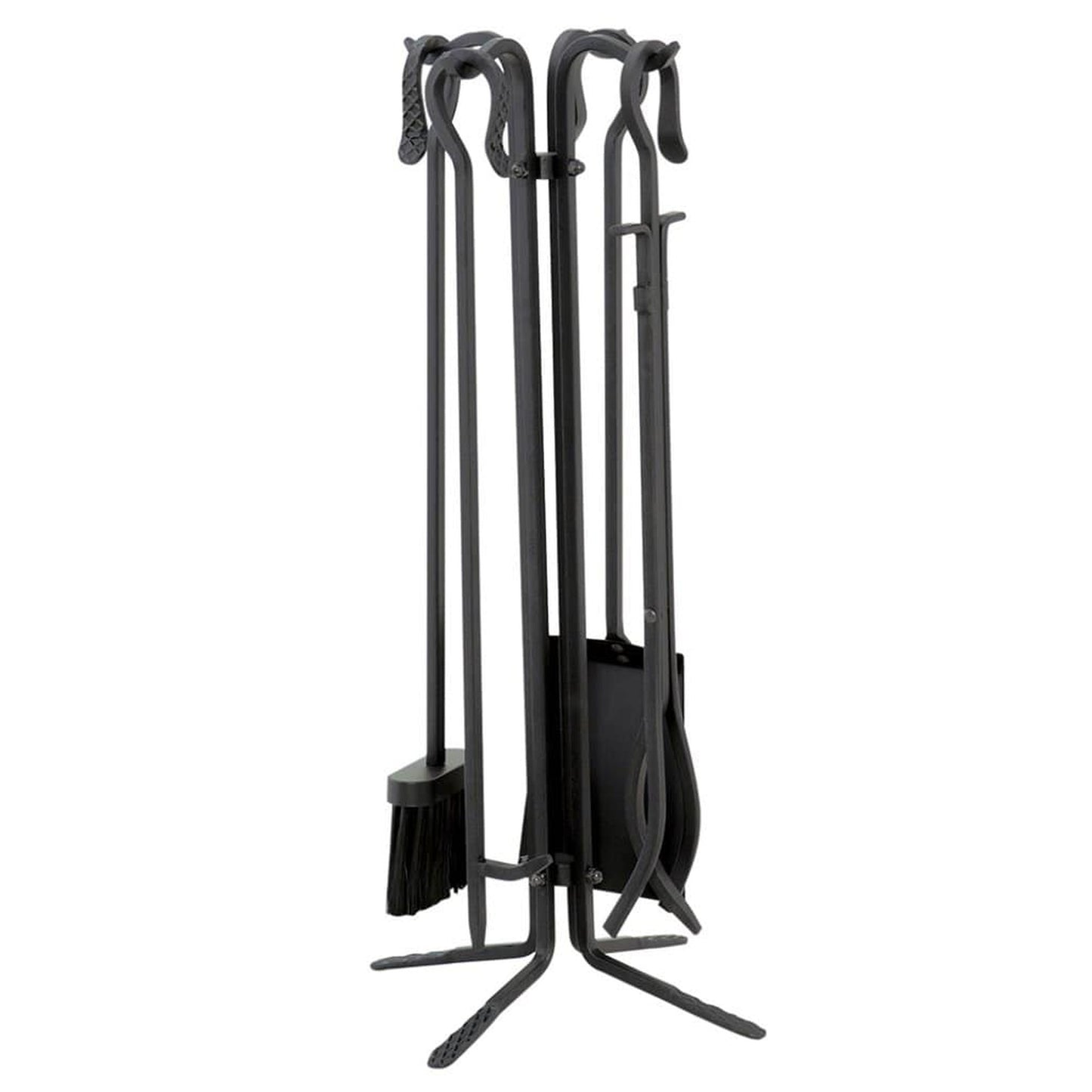 UniFlame 22" T18070BK 5-Piece Black Wrought Iron Fireset w/ Crook Handles