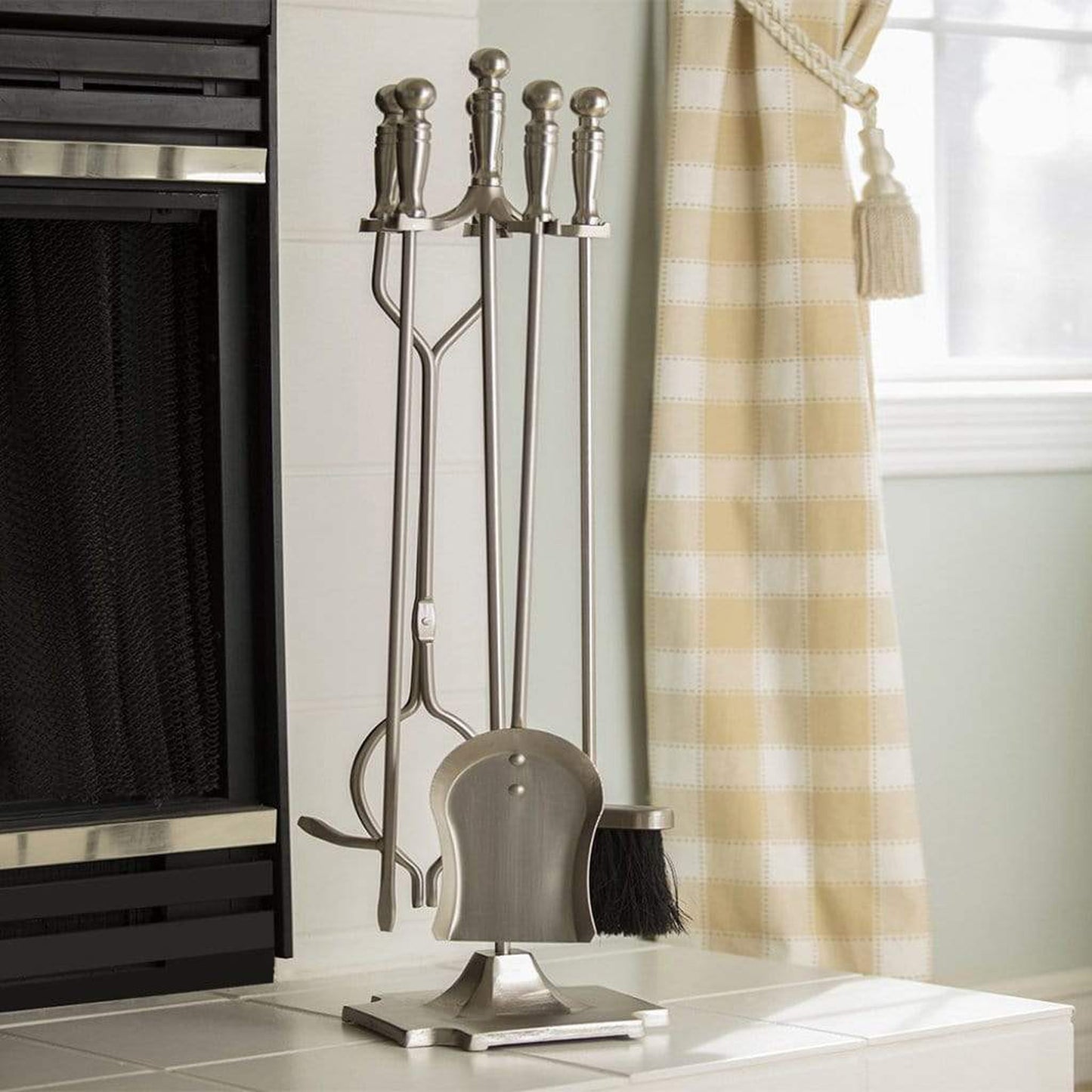 UniFlame 31" F-7547 5-Piece Satin Pewter Fireset w/ Ball Handles